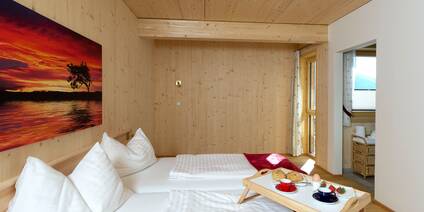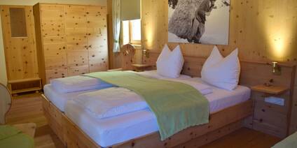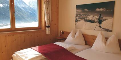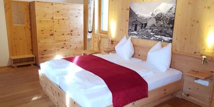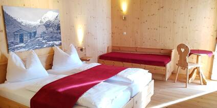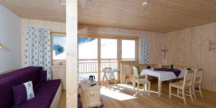 Für größere Gruppen oder Familien bieten die Appartements „Bergblick“ und „Blauspitz“ ausreichend Raum. Mit 85 m² bieten diese Appartements drei Hauptschlafzimmer mit gemütlichen Doppelbett, von denen zwei über ein eigenes Badezimmer en suite verfügen. Zusätzlich gibt es ein weiteres Badezimmer und ein separates Gäste-WC. Der offene Wohn- und Essbereich mit direktem Zugang zum Balkon ist der ideale Treffpunkt für gemeinsame Stunden. Genießen Sie von beiden Appartements eine unvergleichliche Aussicht auf die majestätischen Gipfel und das weite Tal.