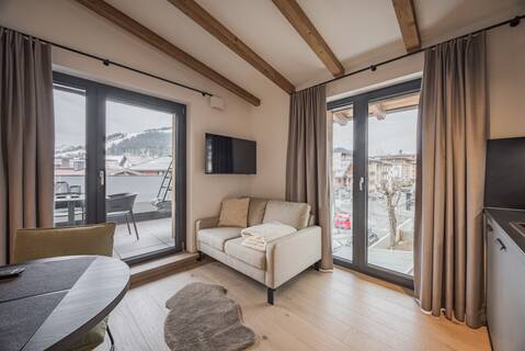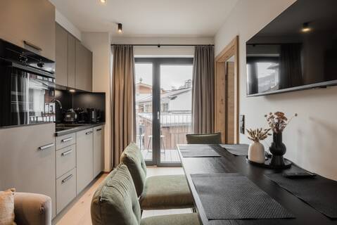 Die Appartements vereinen Qualität und Komfort auf höchstem Niveau. Sie bieten Platz für zwei bis sechs Personen und sind mit hochwertigen Materialien und modernem Design ausgestattet. Große Fensterfronten fluten die Räume mit Licht und bieten einen atemberaubenden Blick auf die umliegende Bergwelt. Die modernen vollausgestatteten Küchen und hochwertigen Betten sorgen für ein exklusives Wohnerlebnis und erholsame Nächte.