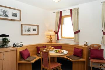 Der Pächter ist ein erfahrener Gastronom und legt großen Wert auf eine gute Küche. Neben der Möglichkeit zur Selbstversorgung können Gäste auf Wunsch ein Frühstück genießen oder sich ein Lunchpaket zur Wanderung oder dem Skitag mitnehmen. Im Herbst wird zudem das traditionelle Törggelen angeboten – ein kulinarisches Highlight mit herzhaften Tiroler Spezialitäten.
