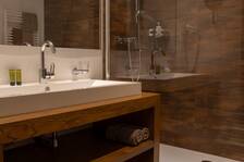 Sportalm Doppelzimmer – Hotelkomfort in bester Lage: Ein stilvoll eingerichtetes Zimmer mit eigenem Badezimmer mit Dusche und Balkon – perfekt für erholsame Tage.