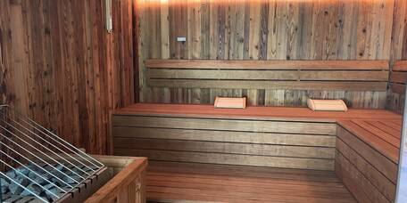 Der Wellnessbereich im Untergeschoss bietet eine Panoramasauna, Infrarotstrahler und eine Schwalldusche – hier können die Gäste nach einem aktiven Tag wunderbar entspannen. Die vier gemütlichen Schlafzimmer mit jeweils einem Bad en-suite (mit Regendusche) verteilen sich auf vier Ebenen. Die Schlafzimmer im Obergeschoss verfügen über ein zusätzliches Hochbett, das bei Kindern sehr beliebt ist. Im Erdgeschoss liegen der offene Wohn- und Essbereich.