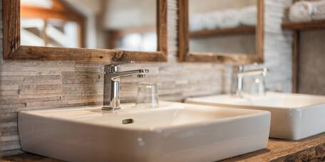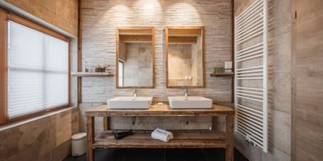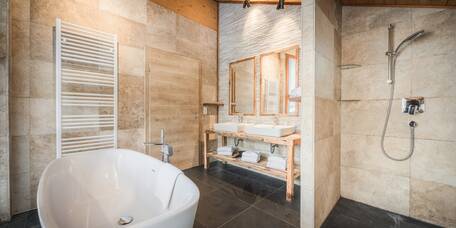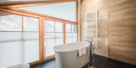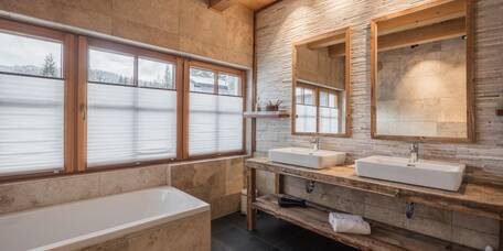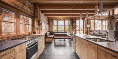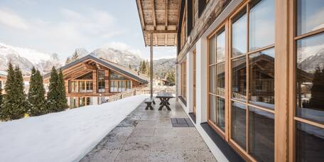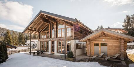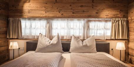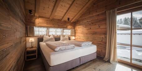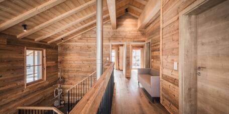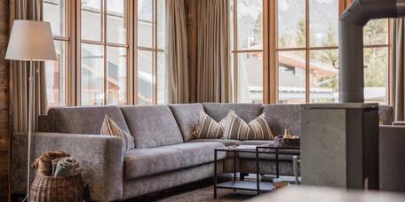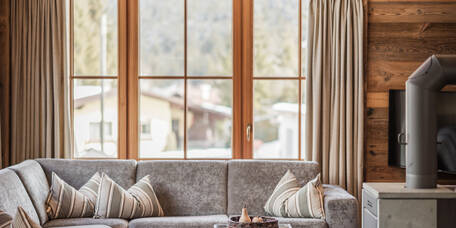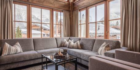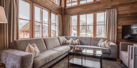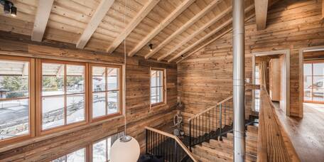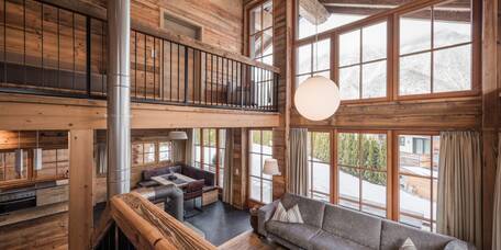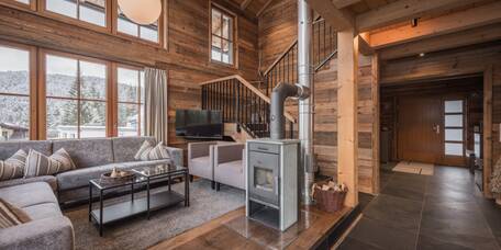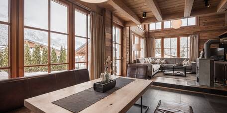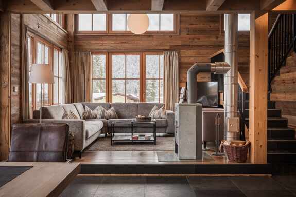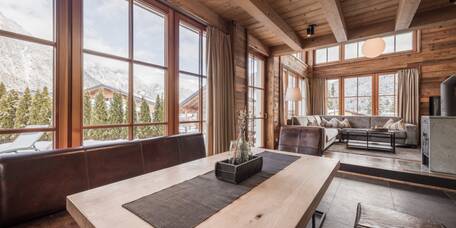 Jedes der fünf luxuriösen Chalets ist stilvoll und mit natürlichen, heimischen Materialien ausgestattet, die eine harmonische Verbindung von traditionellem alpinem Charme und modernem Komfort schaffen. Die großzügigen Panoramafenster im Wohnbereich, die bis ins Obergeschoss reichen, erlauben es Ihnen, die spektakuläre Bergwelt auch im Inneren des Chalets zu genießen.
