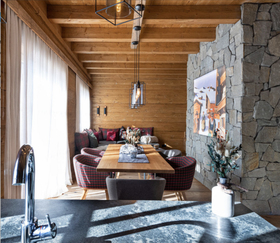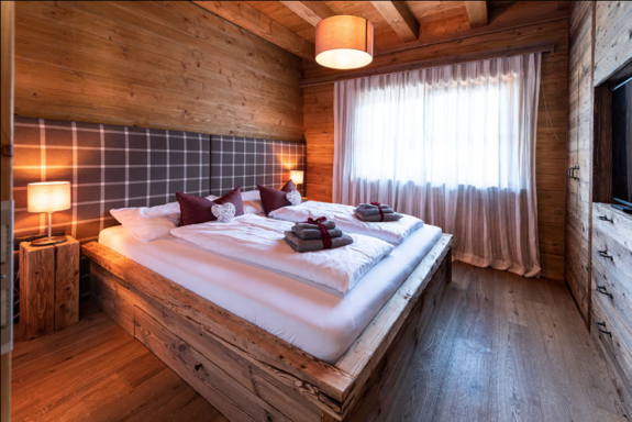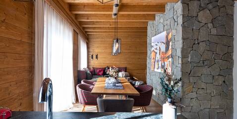 Urig, rustikal und doch überaus modern, geschmackvoll sowie luxuriös wurde das Appartement von den Eigentümern mit hochwertigen Naturmaterialien eingerichtet. Die Küche ist voll ausgestattet um keine Wünsche offen zu lassen. Sogar ein SodaStream für frisches sprudelndes Bergquellwasser steht zu eurer Verfügung. Der Massivholztisch mit seinen modischen Stühlen eignet sich wunderbar, um gemeinsam zu speisen. Die großzügige Verglasung sorgt dabei zusätzlich für eine wunderbare Stimmung und euer Blick kann stets nach Draußen zur umliegenden Natur gleiten. Für die optimale Unterhaltung sorgt der große SAT-LED-TV und für perfekten Ohrenschmaus das SONOS ® Speaker System. Die überaus behaglichen Schlafzimmer überzeugen mit ihren Komfortdoppelbetten und sorgen für einen erholsamen Schlaf. Ein separates WC sowie ein Badezimmer mit großzügiger Regendusche sorgen für die tägliche Frische ohne Stau. Die große Terrasse bietet eine beeindruckende Aussicht auf die Umliegende Bergwelt. Doch das wahre Highlight dieser Suite ist die Fasssauna, in der ihr euch so richtig nach einem herrlichen Tag entspannen könnt. Ein Sichtfenster ermöglicht euch auch dort das wunderbare Panorama zu genießen.