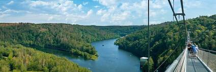 In summer, the Harz Mountains show their liveliest side: hiking enthusiasts can discover mystical paths through deep forests and past impressive cliffs on the Harz Witches' Trail. Mountain bikers and climbers will find exciting challenges, while families can look forward to adventure hiking trails, stalactite caves or a ride on the steaming Brocken railway. Refresh yourself at mountain lakes or the Rappbode Dam with its suspension bridge and zipline. The Harz Mountains in summer - full of exercise, nature and unforgettable views.