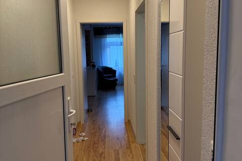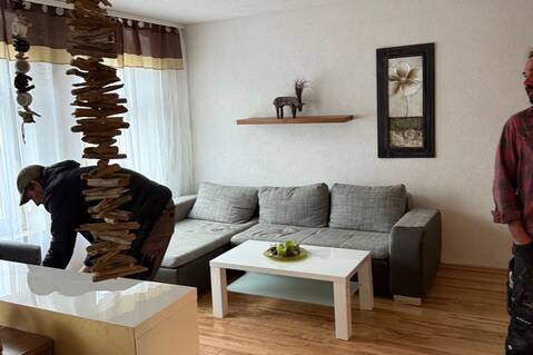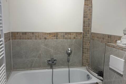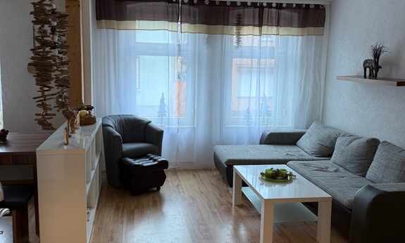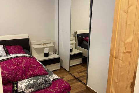 Each flat has a separate bedroom with a cosy double bed and a living room with a double sofa bed. The modern bathroom is equipped with a combination bath and shower - perfect for relaxing after an active day. The open-plan kitchen is fully equipped with an electric cooker, fridge, coffee machine, toaster and everything you need for cooking.