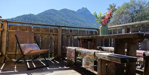 The terrace offers a wonderful view of the surrounding mountains. An electric barbecue is available to round off the day with a convivial barbecue. The kitchen is fully equipped. A special highlight is the solid wood table with solid wood bench and chairs, which invites you to eat and linger together.