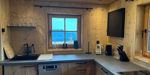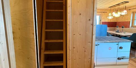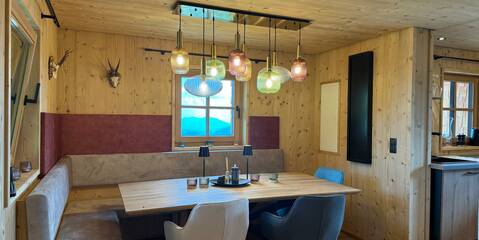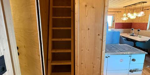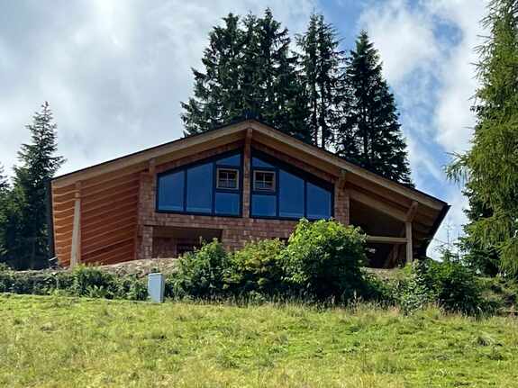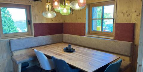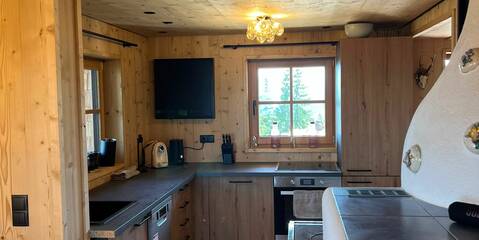 Renovated in 2024/2025, the log cabin impresses with its rustic charm and has been furnished with high-quality materials. The natural wood creates a cozy atmosphere and provides a real cabin feeling. Guests can relax in the three lovingly furnished bedrooms after an eventful day in the mountains. Each room is equipped with a comfortable double bed to ensure a restful night's sleep. The hut has two modern bathrooms with washbasin, shower and WC. The fully equipped kitchen with electric hob is ideal for self-catering, and the cozy dining area invites you to enjoy convivial evenings.